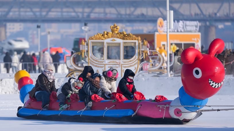 冬の松花江、氷雪レジャーの舞台に 中国・ハルビン