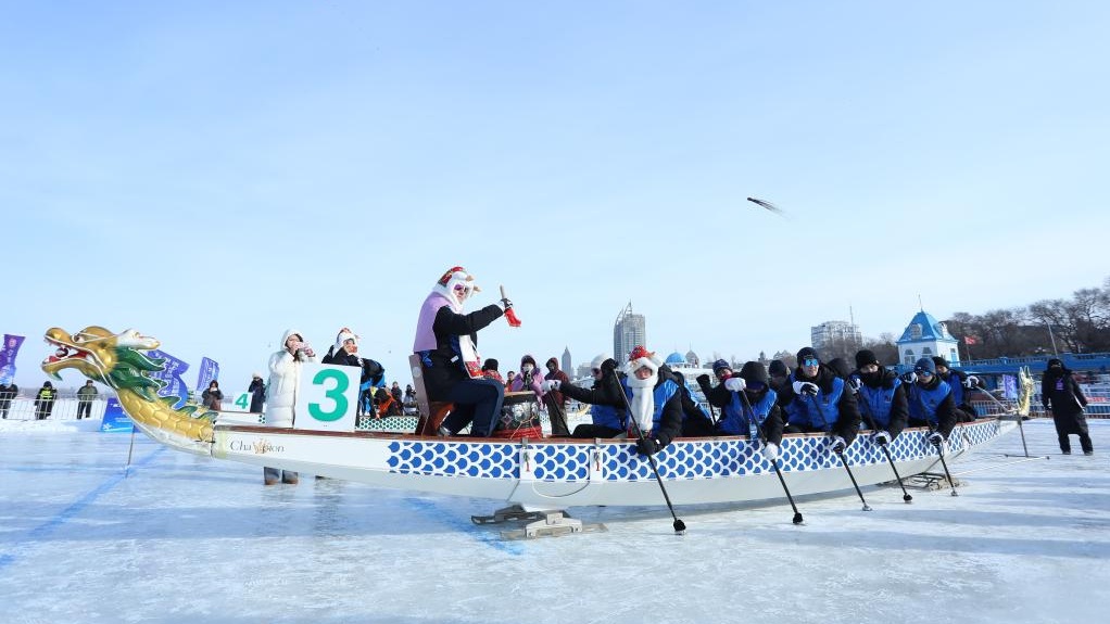 ハルビンで氷上ドラゴンボート大会 中英のトップ大学が対決
