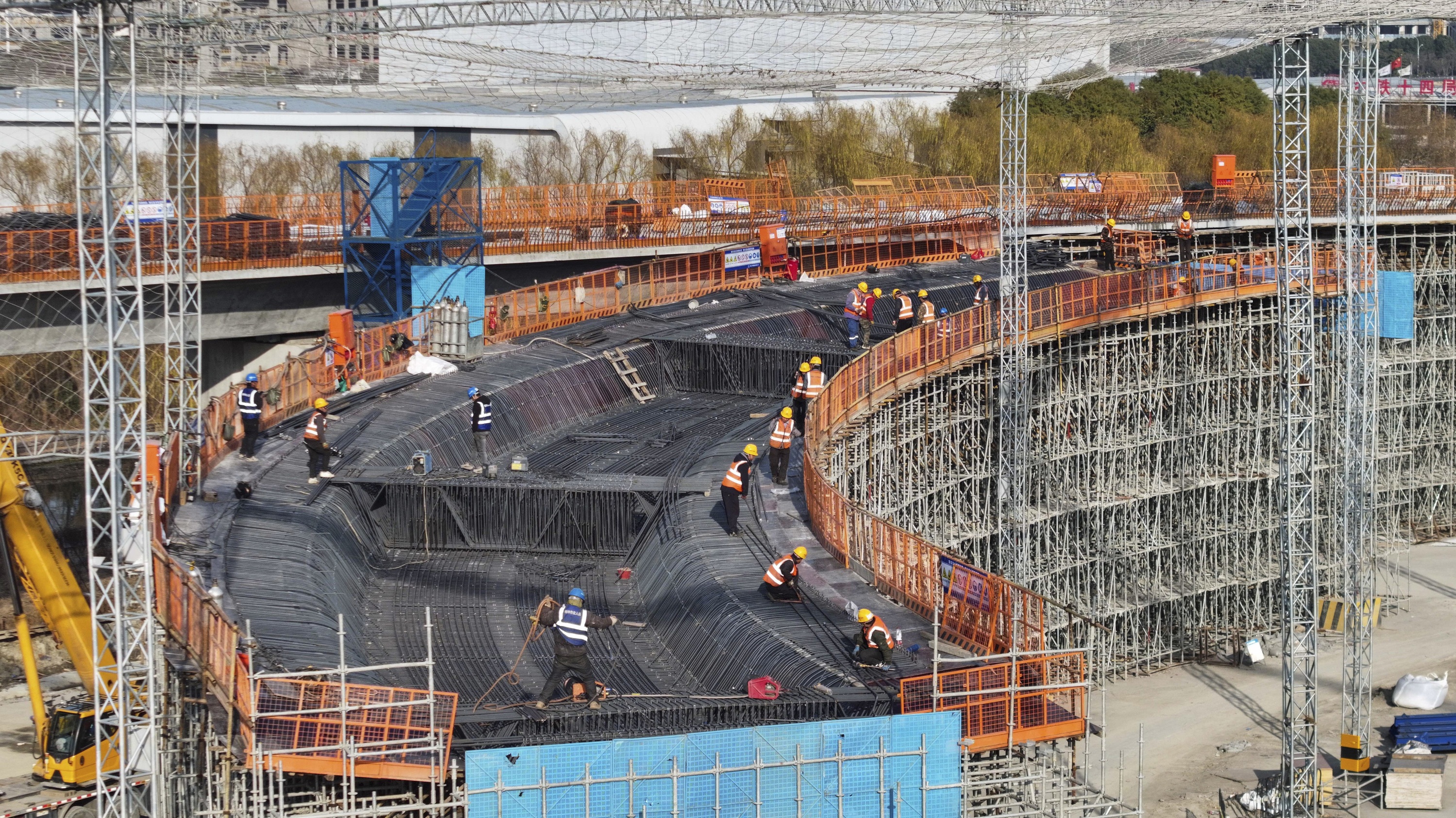 蘇州東駅集散輸送システム・連絡線工事、現場打ち作業が本格化 中国江蘇省