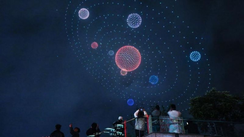 夜空を彩るドローンショー 中国・貴陽市