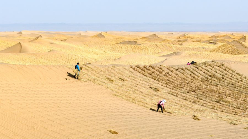 春の防砂作業進む 中国甘粛省敦煌市
