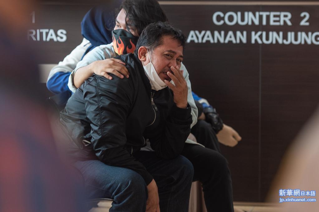 8日、インドネシア・タンゲランで涙を流す遺族。(ジャカルタ=新華社配信)