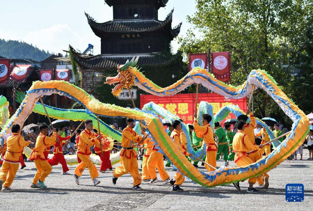 無形文化遺産の「花顔竜」で国慶節を祝う 中国貴州省
