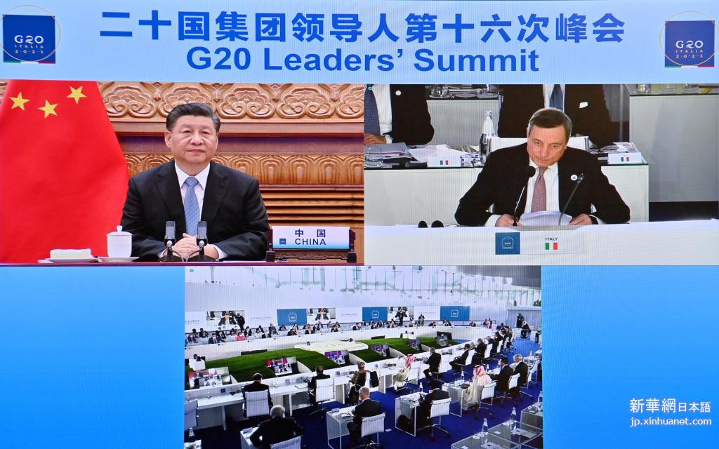 中国の習近平(しゅう・きんぺい)国家主席は10月31日、20カ国・地域首脳会議(G20サミット)の2日目の会議に引き続き北京からオンラインで出席した。(北京=新華社記者/岳月偉)