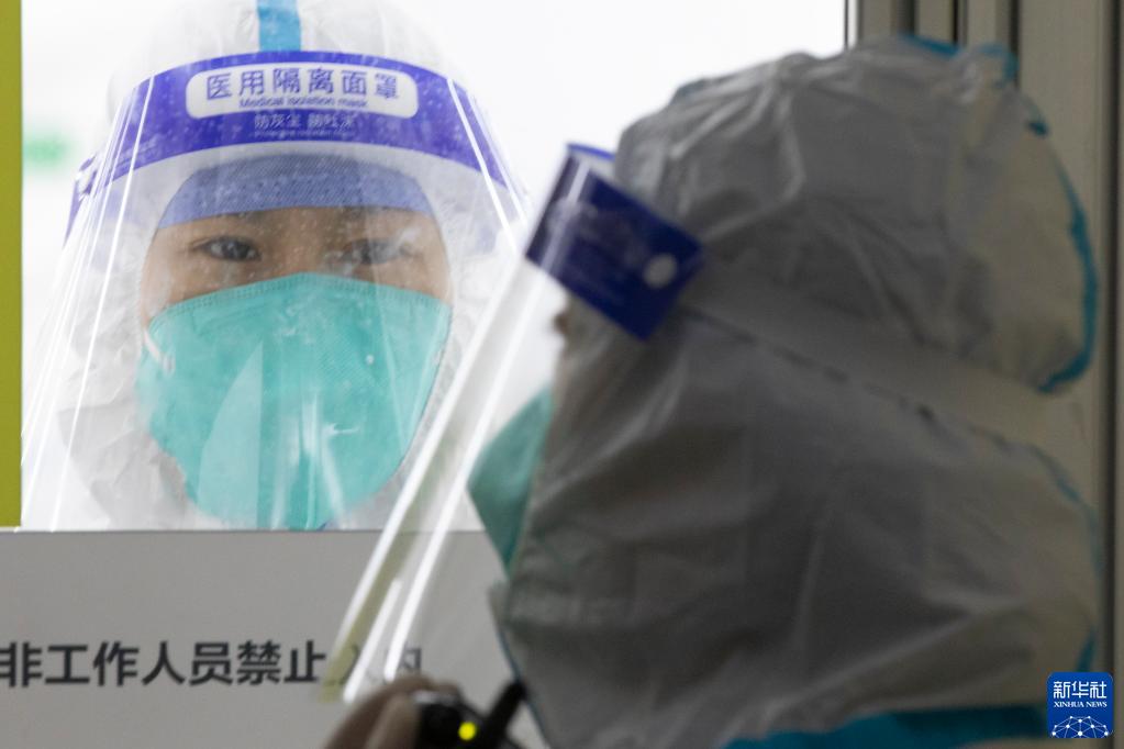 4日、ハルビン市にあるエアドーム型の移動実験室で働く医療従事者。(ハルビン=新華社記者/張濤)