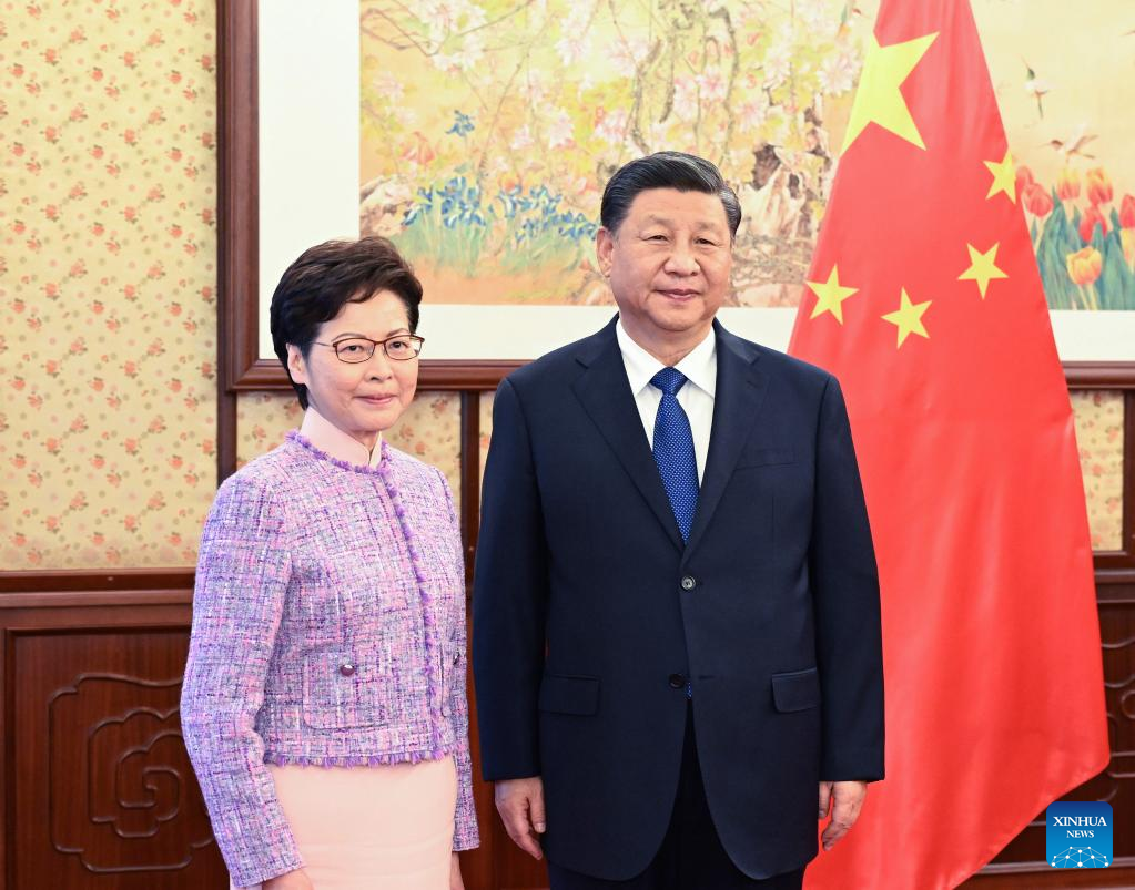 【新華社北京12月23日】中国の習近平(しゅう・きんぺい)国家主席は22日午後、北京・中南海の瀛台(えいだい)で職務報告のため北京入りした香港特別行政区の林鄭月娥(キャリー・ラム)行政長官と会見し、現在の香港情勢と特区政府の業務状況に関する報告を聞いた。