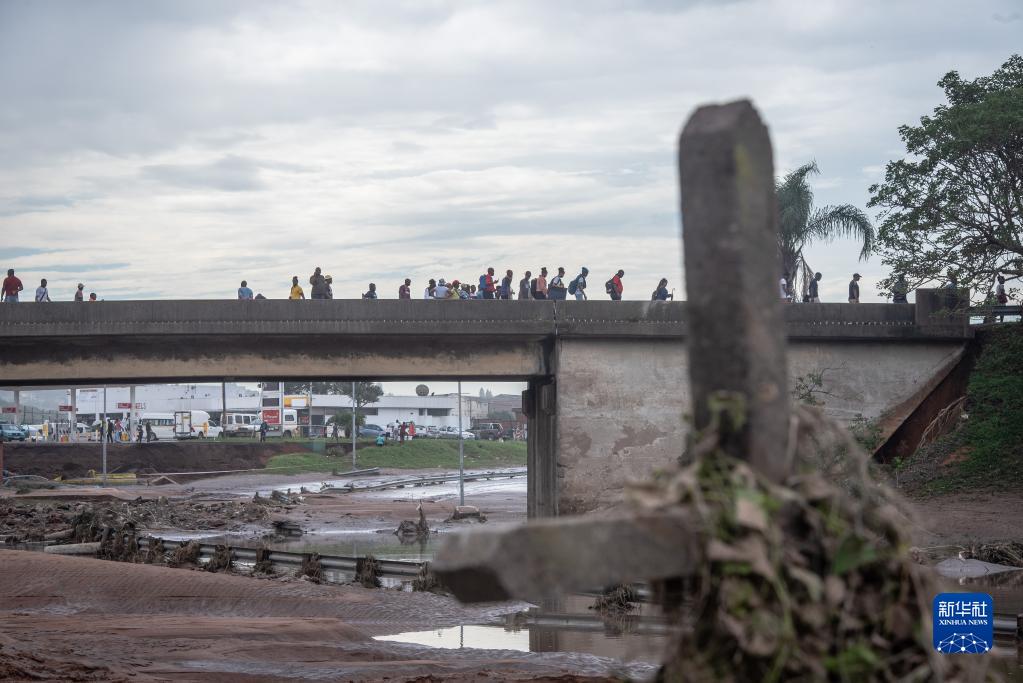 13日、南アフリカのクワズール・ナタール州にある橋を渡る人々。(クワズール・ナタール=新華社配信)