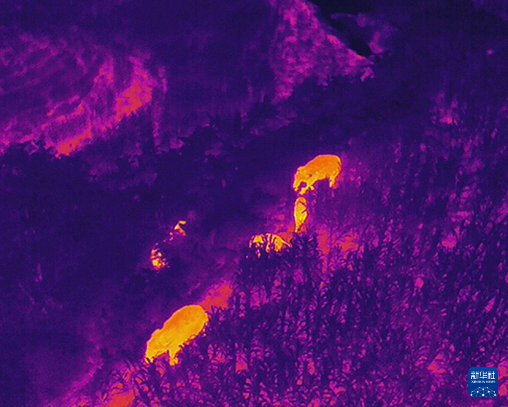 19日、小型無人機(ドローン)のサーモグラフィーカメラで撮影したアジアゾウ。(普洱=新華社配信/刁発興)
