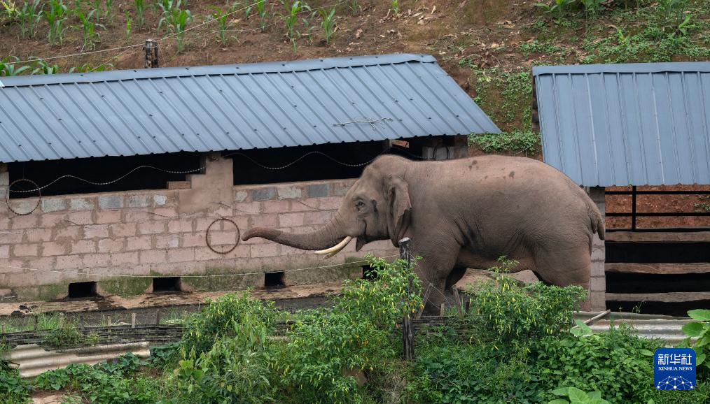 19日、牛舎に近づく雄のアジアゾウ。(普洱=新華社記者/費茂華)pagebreak