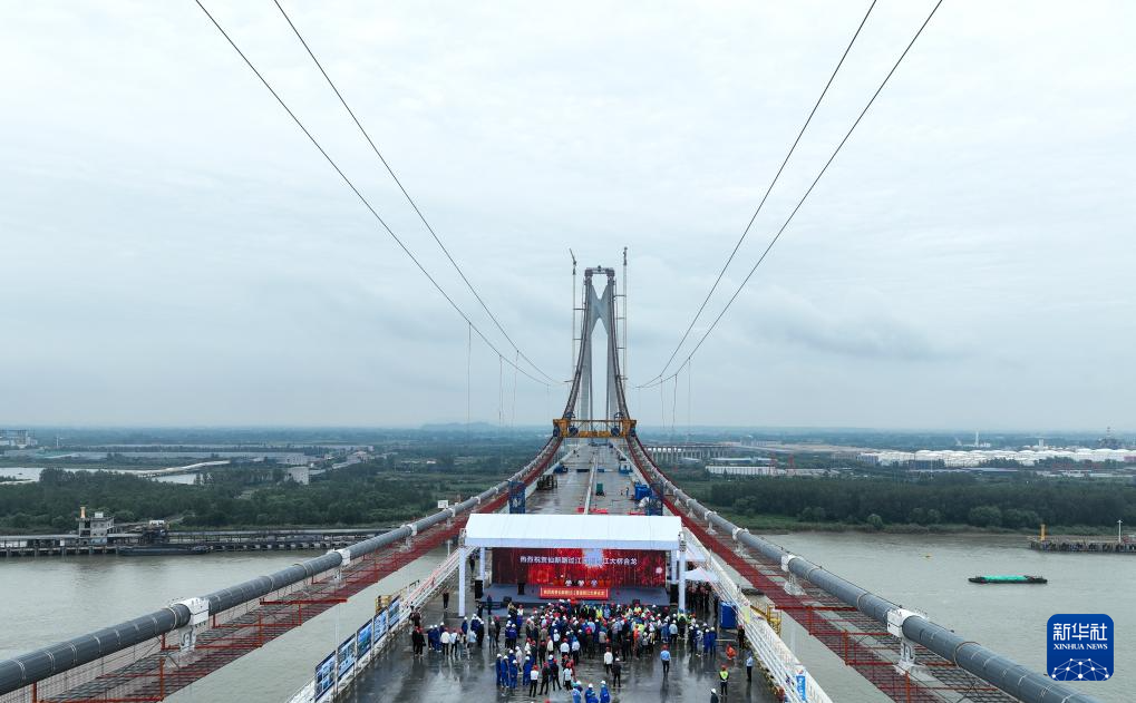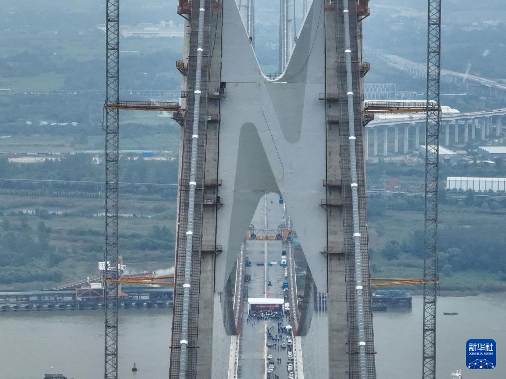 【新華社南京9月28日】中国江蘇省南京市で23日、南京市公共工程建設センターが投資し、インフラ建設大手の中交第二航務工程局などが施工を請け負う南京仙新路長江大橋の接合が完了し、来年の開通に向けて着実な一歩を踏み出した。