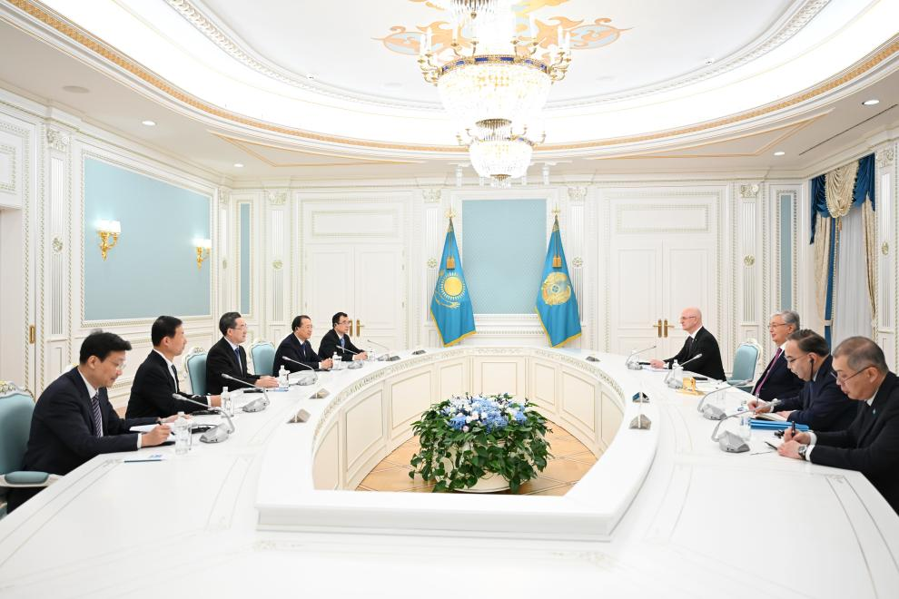丁薛祥(てい・せつしょう)中国共産党中央政治局常務委員・国務院副総理は27日、カザフスタンの首都アスタナで同国のトカエフ大統領と会見した。(アスタナ=新華社記者/燕雁)