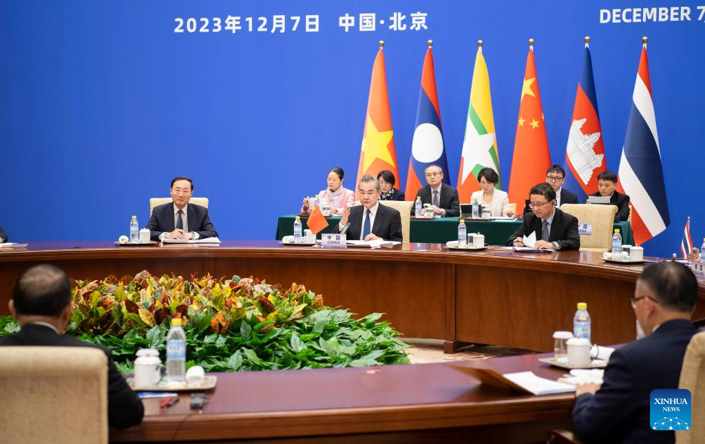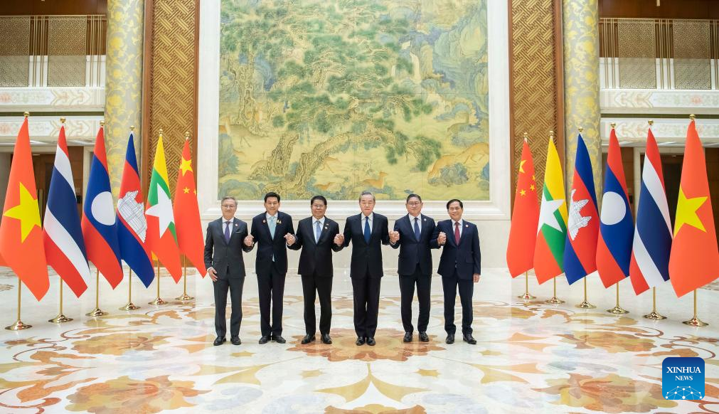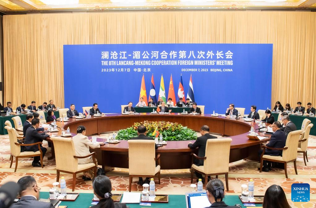 中国北京市で7日、第8回瀾滄江・メコン川協力外相会議が開かれた。中国の王毅(おう・き)共産党中央政治局委員・外交部長とミャンマーのタンスエ副首相兼外相が共同議長を務め、カンボジアのソック・チェンダ・サオピア副首相兼外相、タイのパーンプリー副首相兼外相、ベトナムのブイ・タイン・ソン外相、ラオスのトンサワン・ポムビハネ人民革命党中央委員会対外関係部長が出席した。(北京=新華社記者/李濤)