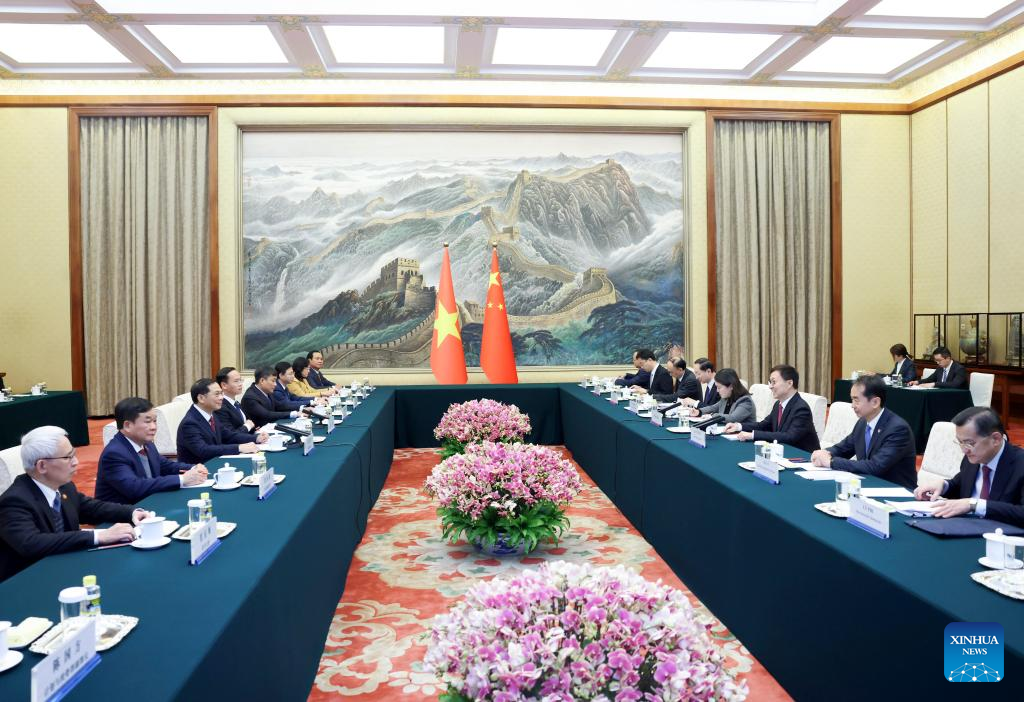 中国の韓正(かん・せい)国家副主席は10日、ベトナムのブイ・タイン・ソン副首相兼外相と北京で会談した。(北京=新華社記者/劉衛兵)