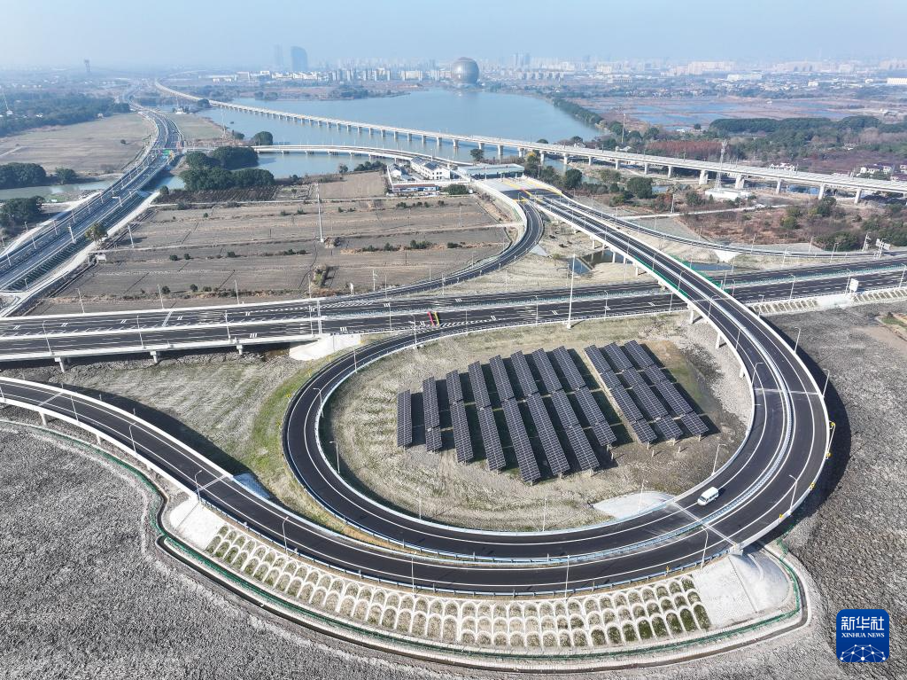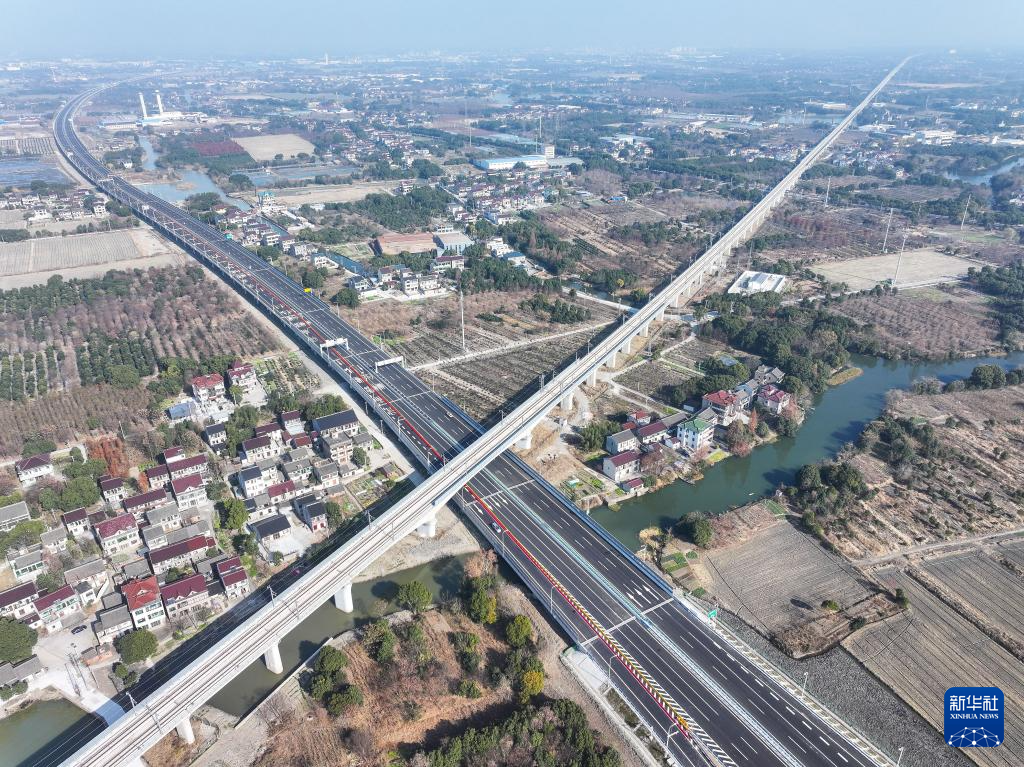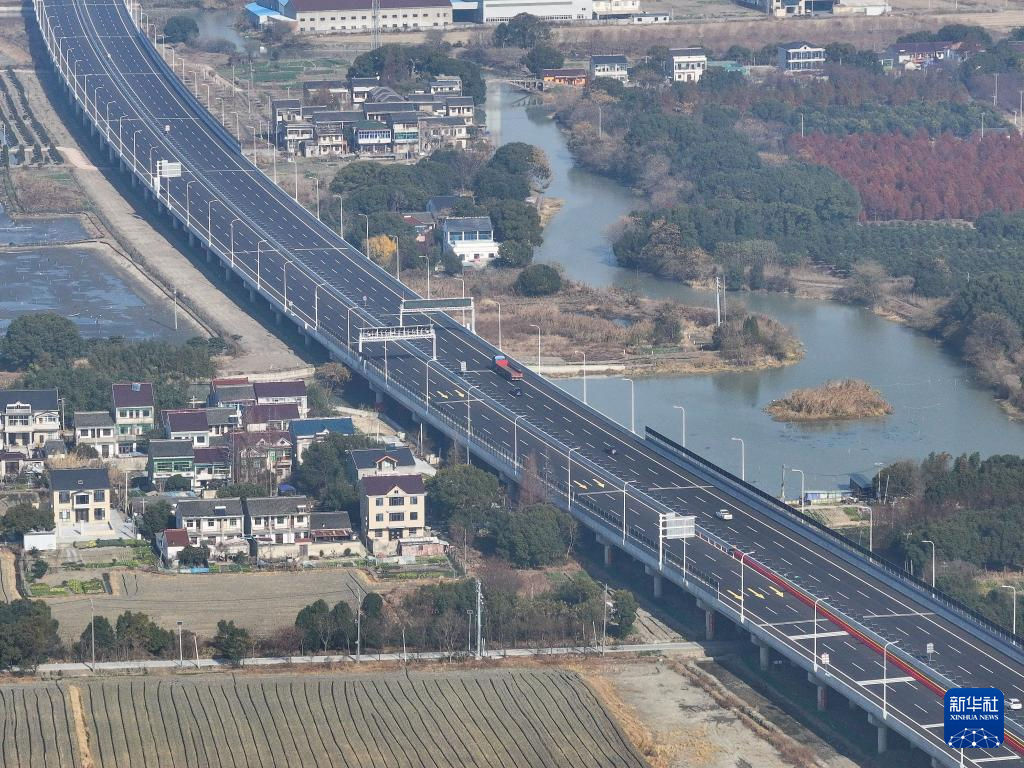 2024年12月31日、車両の通行が始まった蘇台高速道路七都鎮-桃源鎮区間。(ドローンから、蘇州=新華社記者/季春鵬)