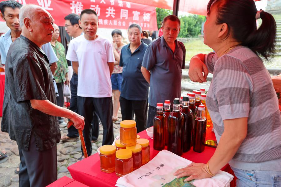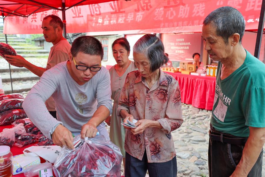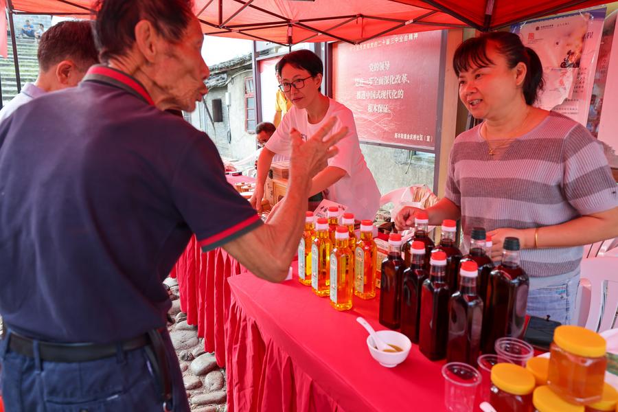 10日、イベントで農産物を買い求める来場者。(武夷山=新華社配信/邱汝泉)
