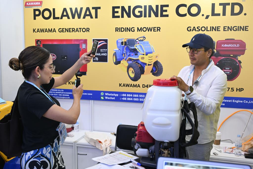 15日、第138回広州交易会のタイ企業エリアで、商品を紹介する出展者。(広州=新華社記者/鄧華)