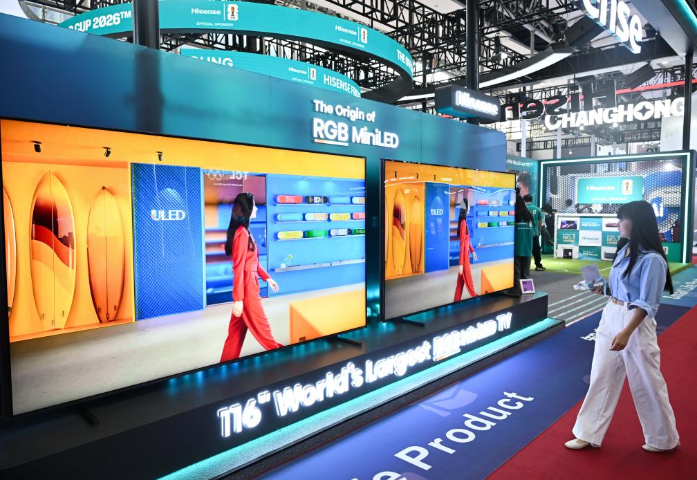 15日、第138回広州交易会のスマート生活展示エリアで、海信集団(ハイセンス)ブースを見学する人。(広州=新華社記者/鄧華)
