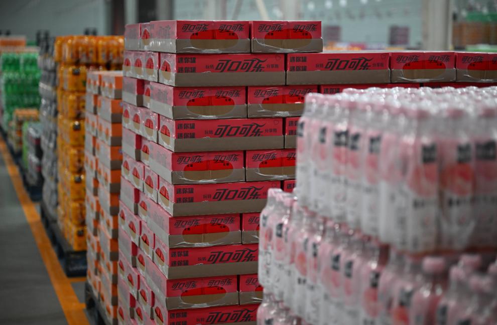 16日、スワイヤ・コカ・コーラが河南省鄭州市で稼働させた新工場に積まれた製品。(鄭州=新華社記者/李嘉南)