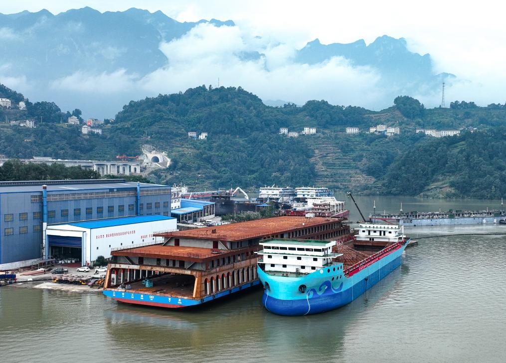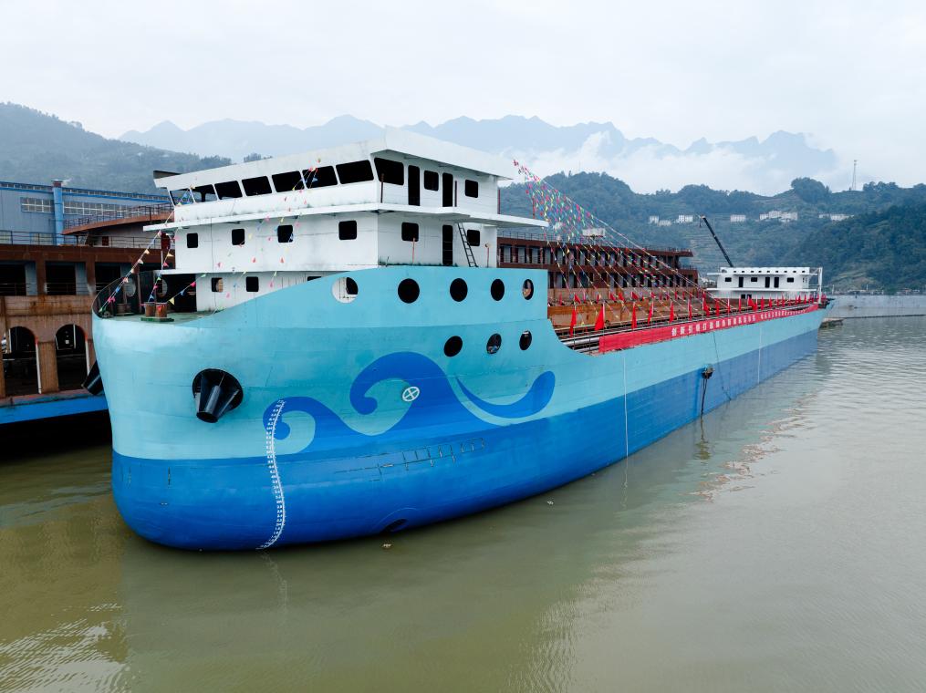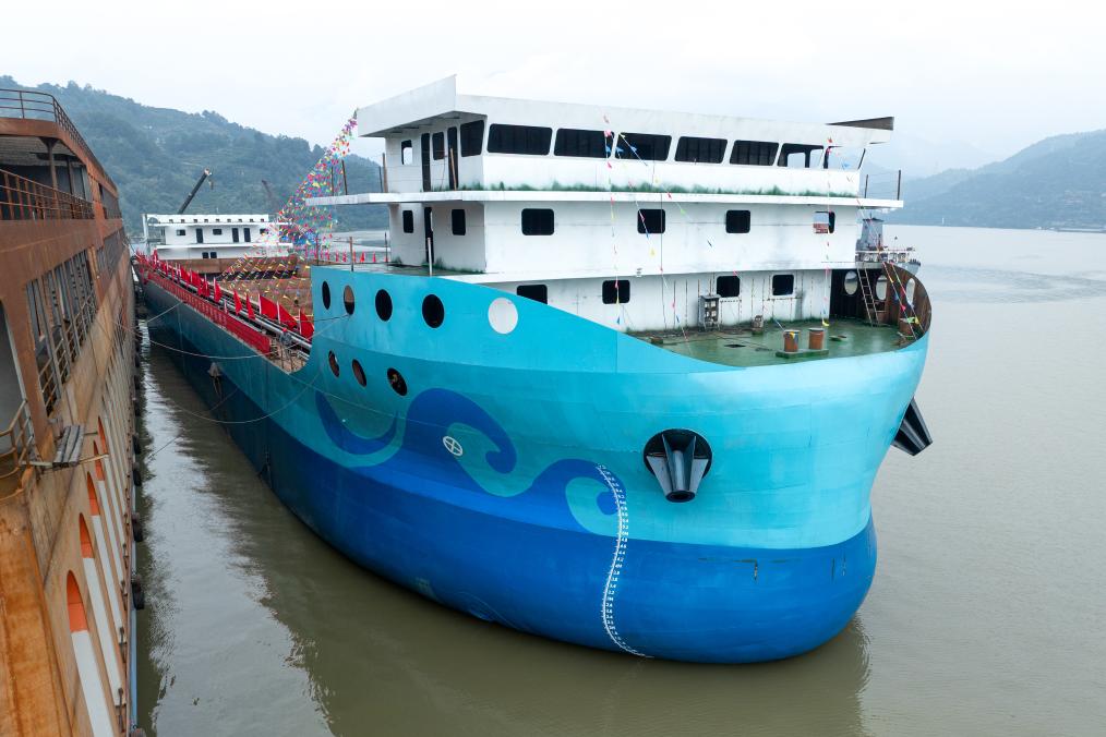 「葛洲壩」は全長約130メートル、最大積載量は1万3千トンを超える。動力源としてリチウムイオン電池の箱型電源12個を備え、総電力量は2万4千キロワット時に上る。速やかな電池交換に対応し、航続距離は500キロに達する。(記者/肖芸九、李思遠)