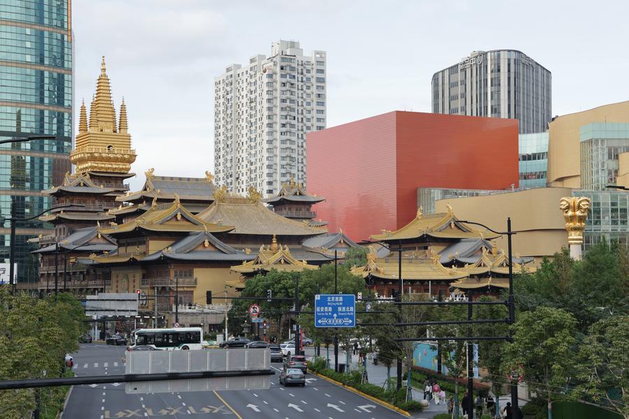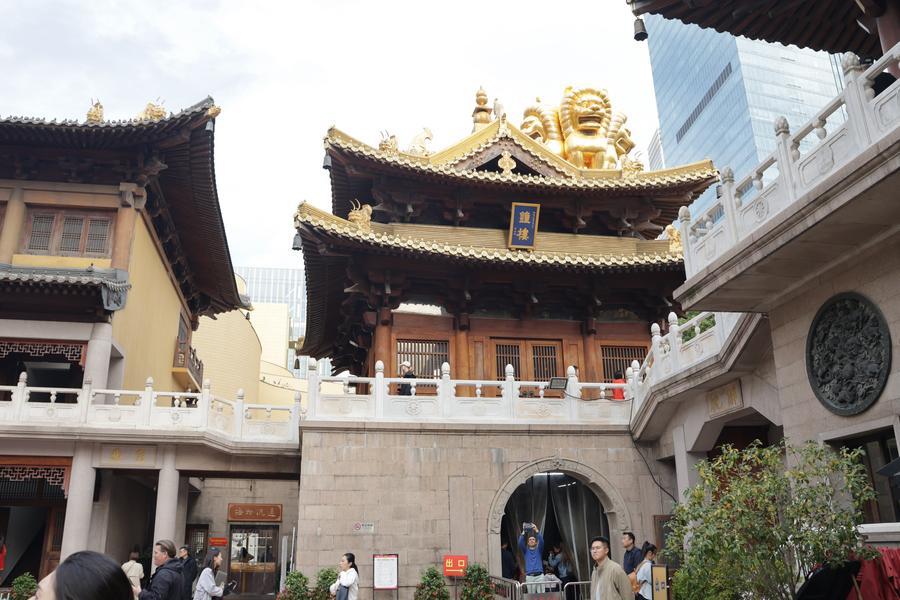 静安寺の外観。(11月3日撮影、上海=新華社記者/藍建中)