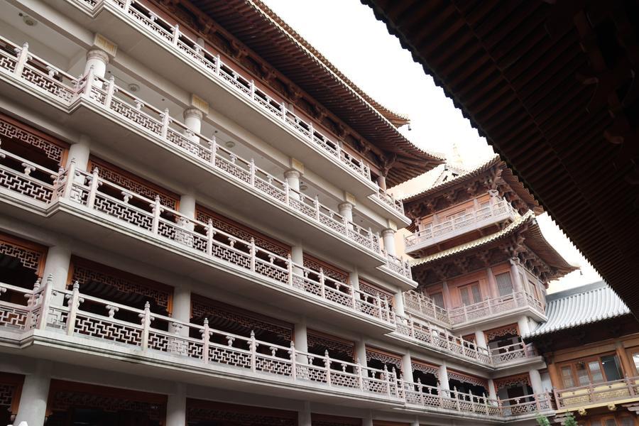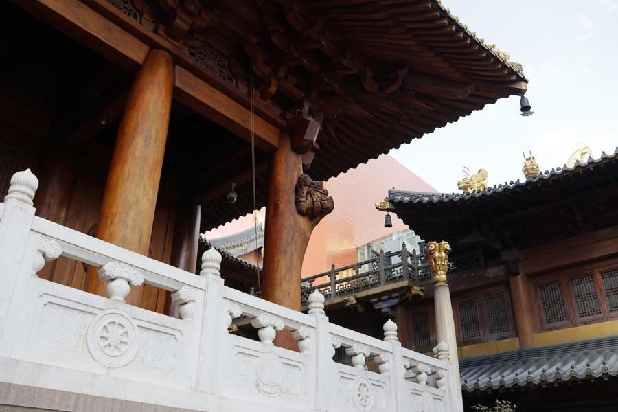 静安寺・大雄宝殿東側の観音殿。(11月3日撮影、上海=新華社記者/藍建中)