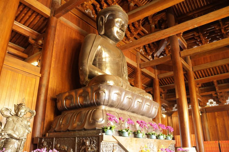 純銀15トンで鋳造した静安寺・大雄宝殿の釈迦牟尼(しゃかむに)仏像。(11月3日撮影、上海=新華社記者/藍建中)