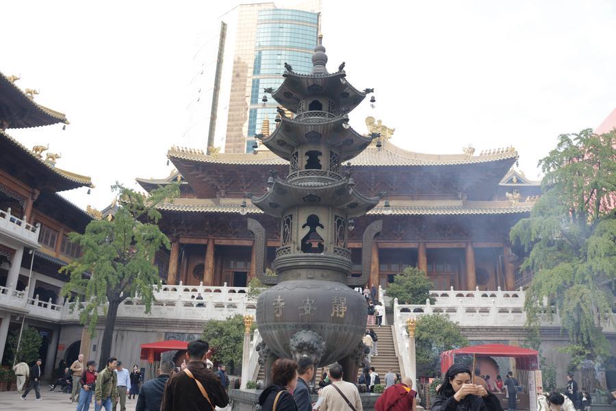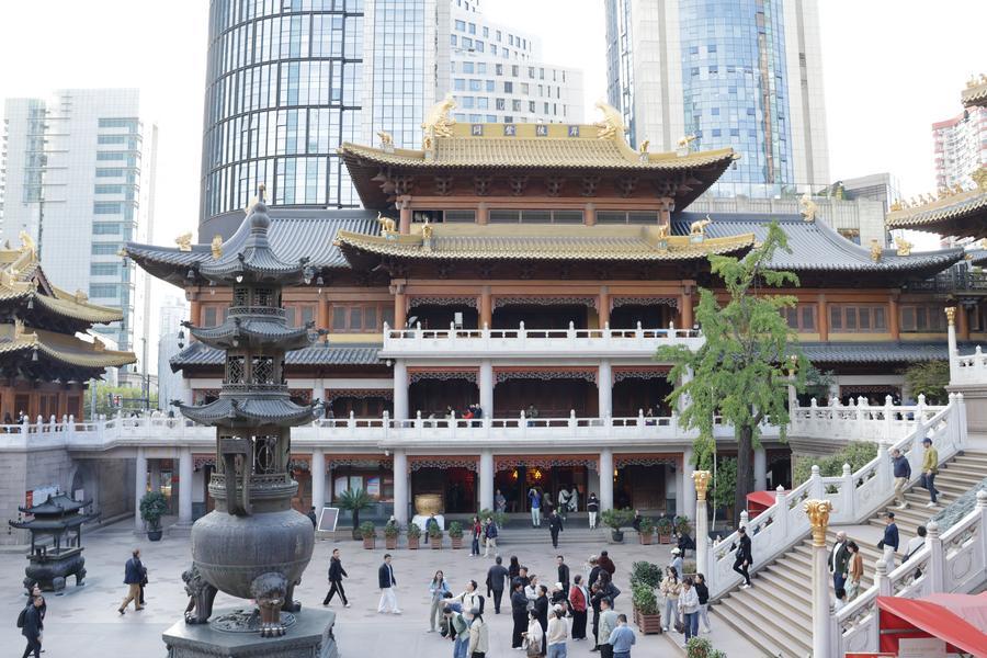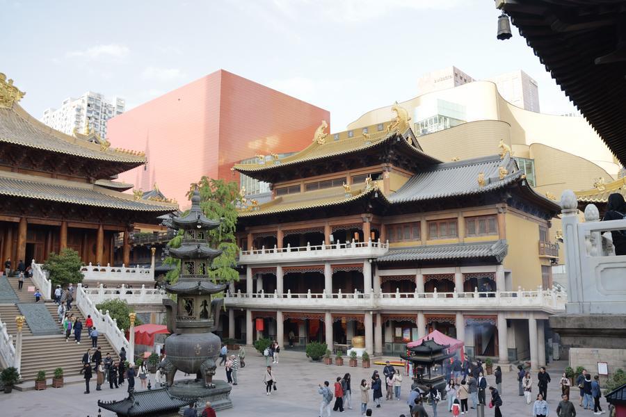 静安寺の境内。(11月3日撮影、上海=新華社記者/藍建中)