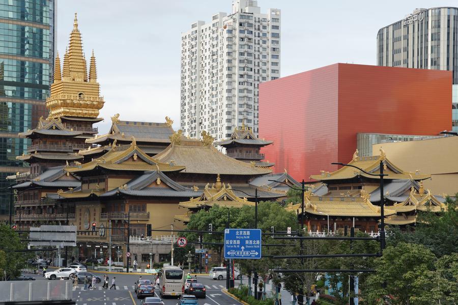 【新華社上海12月24日】中国上海市静安区南京西路に、上海を代表する寺院の一つ、静安寺がある。起源は三国時代東呉の赤烏10(247)年にさかのぼるとされ、当時は「滬瀆(ことく)重元寺」と呼ばれた。北宋の大中祥符元(1008)年に静安寺と改名され、南宋の嘉定9(1216)年に呉淞江のほとりから現在の地に移った。市内最古の仏寺の一つでもある。1998年に改修され、建築面積は2万2千平方メートルに及ぶ。静安区の名称も同寺に由来する。