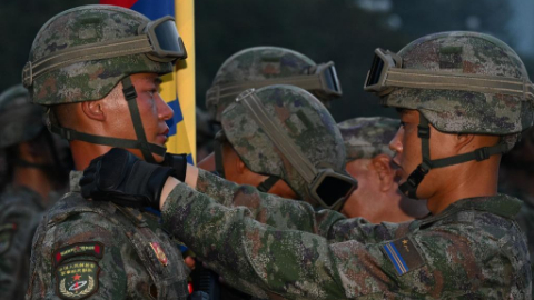 中国人民抗日戦争・世界反ファシズム戦争勝利80周年記念大会で部隊行進