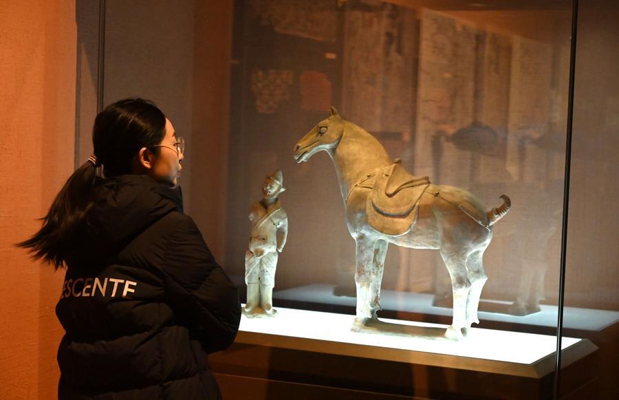 【新華社敦煌1月17日】中国甘粛省の敦煌市博物館では午(うま)年の春節(旧正月)を前に、馬にまつわる文化財を集めた展示が行われている。来館者は文化財に表現された馬の姿を通じ、中国の伝統文化に親しんでいる。
