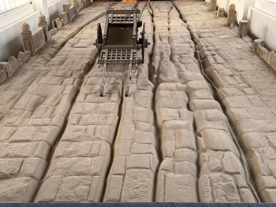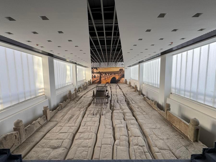 鎮遠橋は黄砂岩の切石を積んだ単アーチ橋で、残存する長さは22メートル、幅は17メートル、アーチ高は3・5メートル。アーチ部分と上部構造、ガンの翼のような護岸構造などが残る。特に注目されたのは、橋面に鮮明に残された4本のわだちで、最も深い場所で10センチに達し、商人や旅人の往来が絶えず、馬車が行き交う明清時代の太原府城にぎわいを伝えていた。「晋商」と呼ばれ、当時栄えた山西商人の活動と北方の商業往来の歴史の足跡といえる。