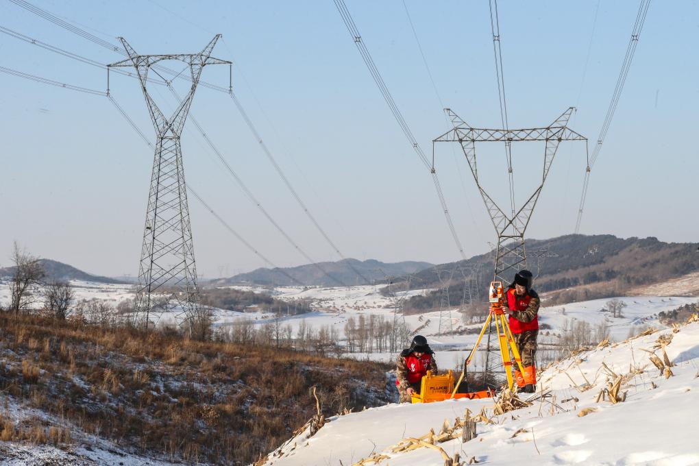 21日、寛甸220キロボルト変電所で低温特別巡回を行う国網丹東供電の職員。(丹東=新華社配信)