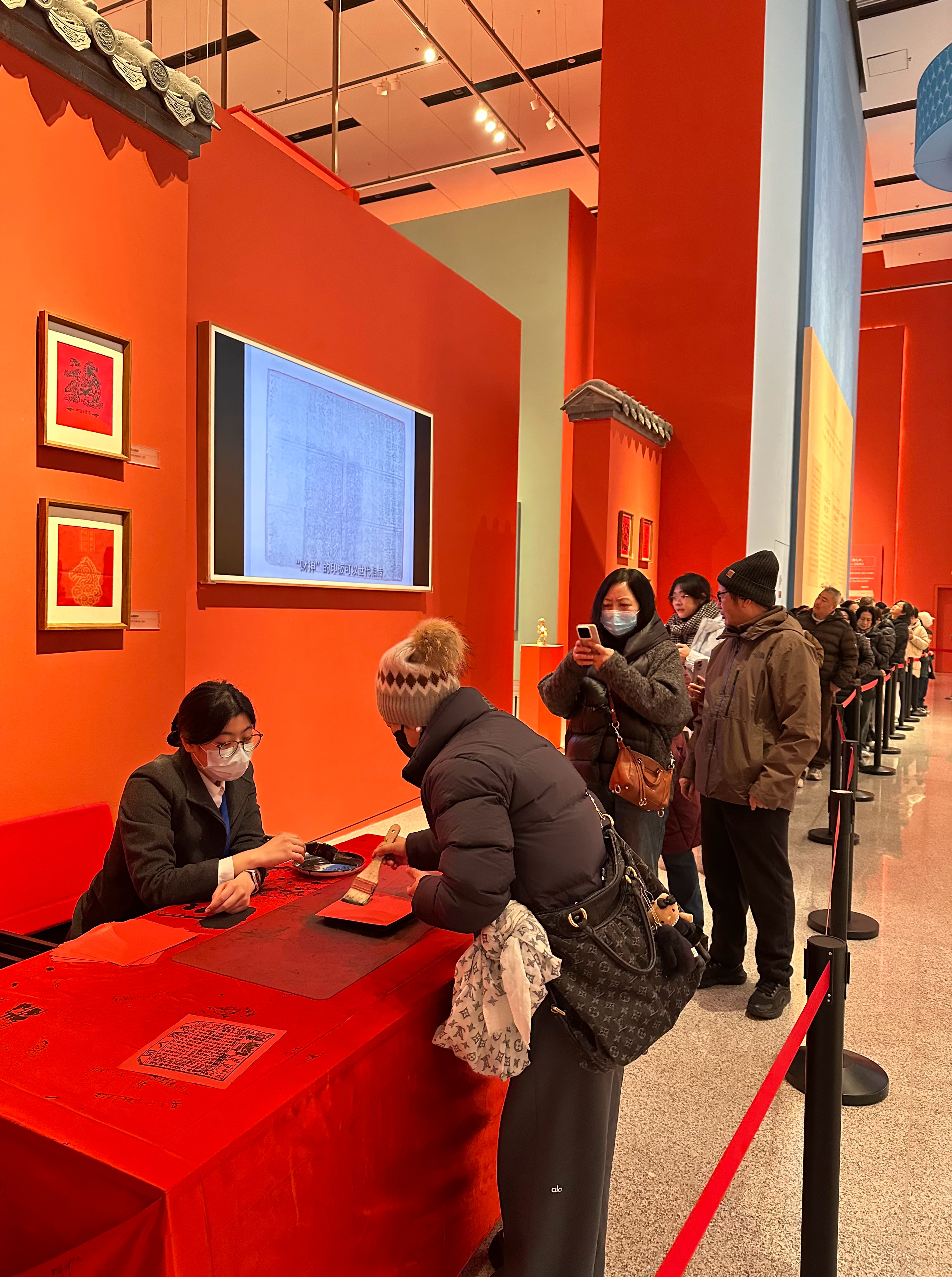 30日、「年越し-丙午春節シリーズテーマ展」の会場で拓本を体験する来場者。(北京=新華社記者/陳辰)