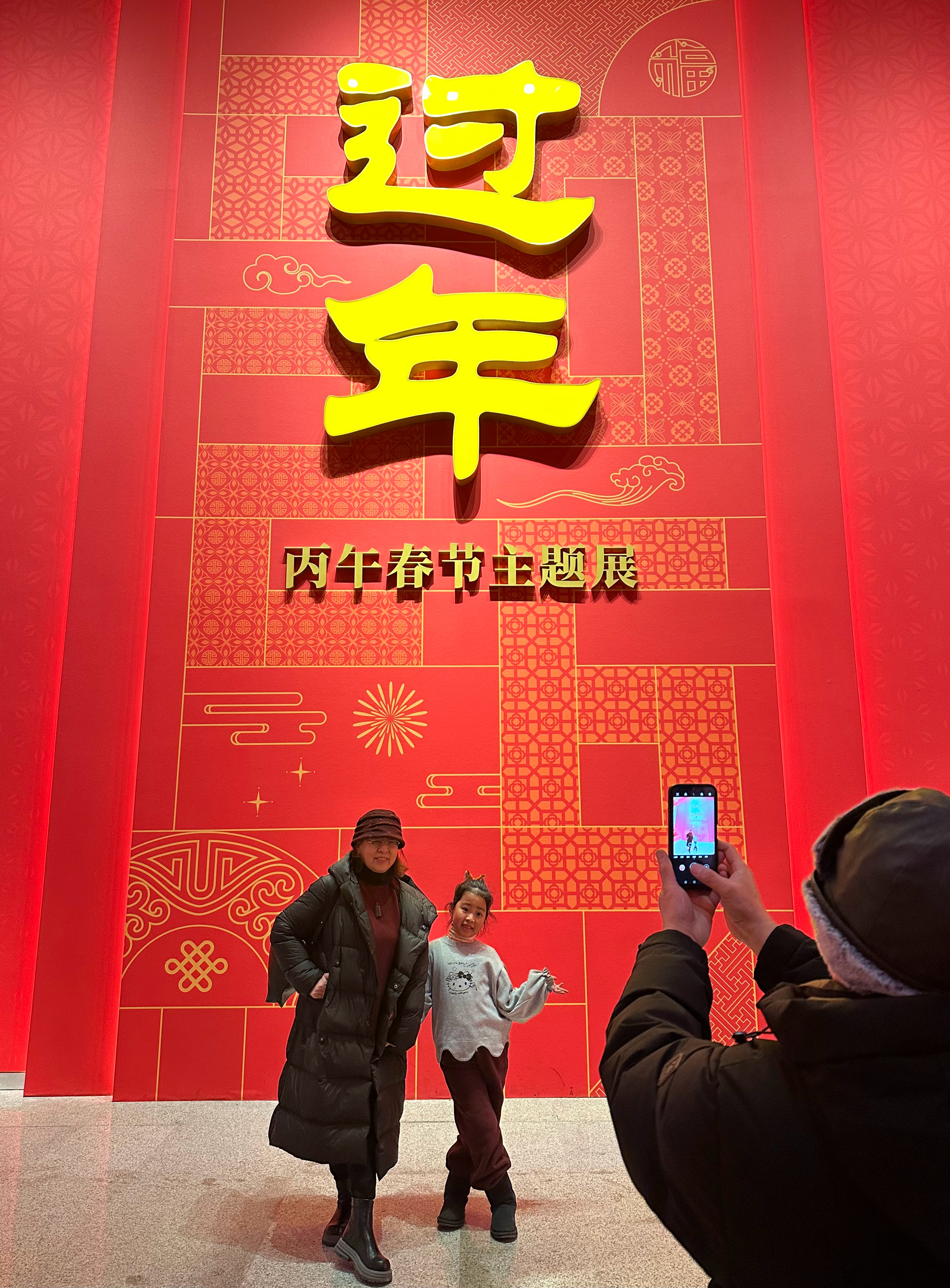 30日、「年越し-丙午春節シリーズテーマ展」の会場で写真に納まる来場者。(北京=新華社記者/陳辰)