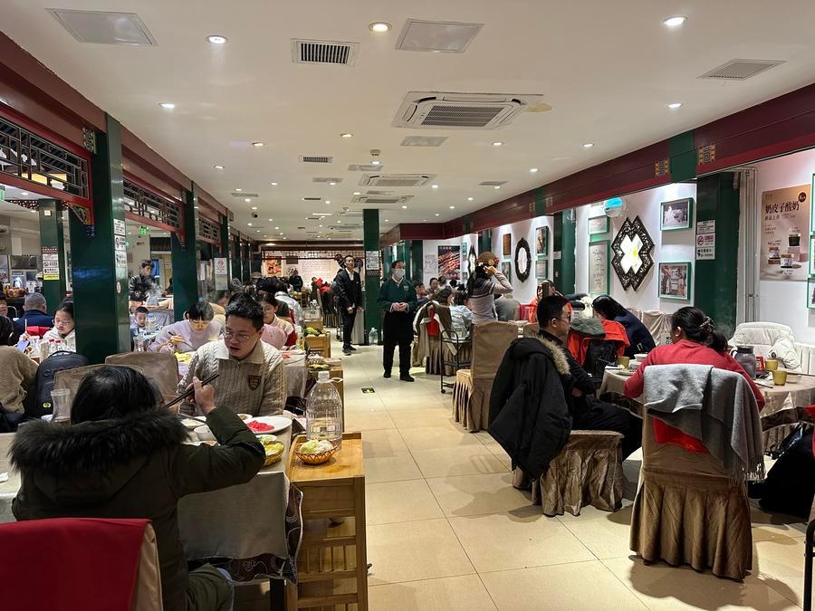 7日、北京の老舗・東来順で食事をする顧客。(北京=新華社記者/邱虹)