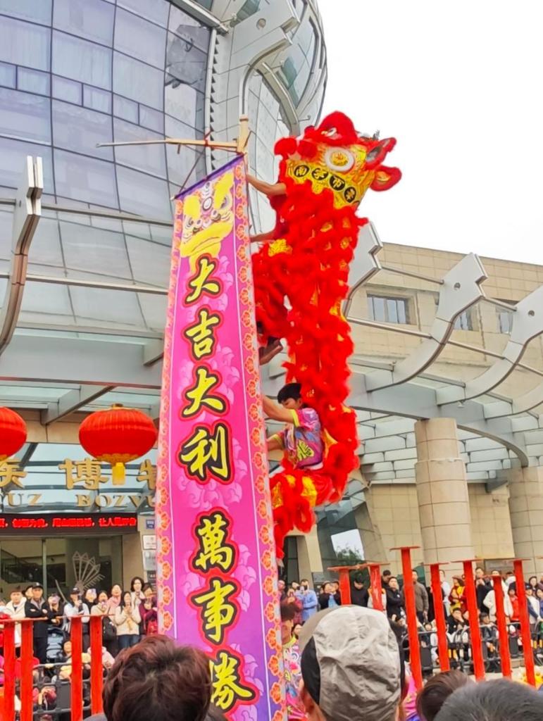 18日、広西民族博物館前の広場で披露された獅子舞。(南寧=新華社記者/黄慶剛)
