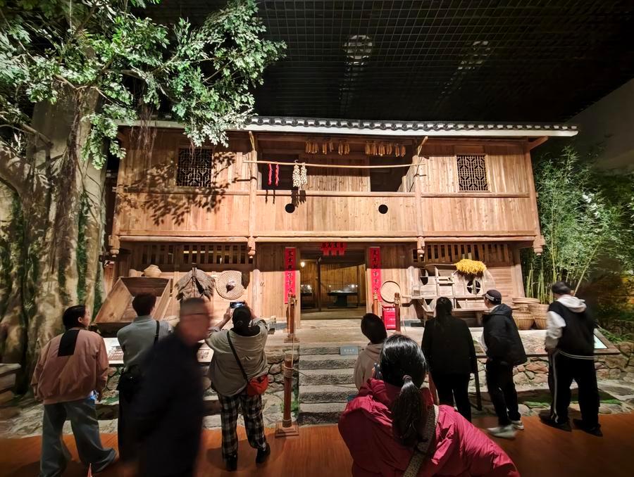 18日、広西民族博物館で伝統民族建築を見る人たち。(南寧=新華社記者/黄慶剛)