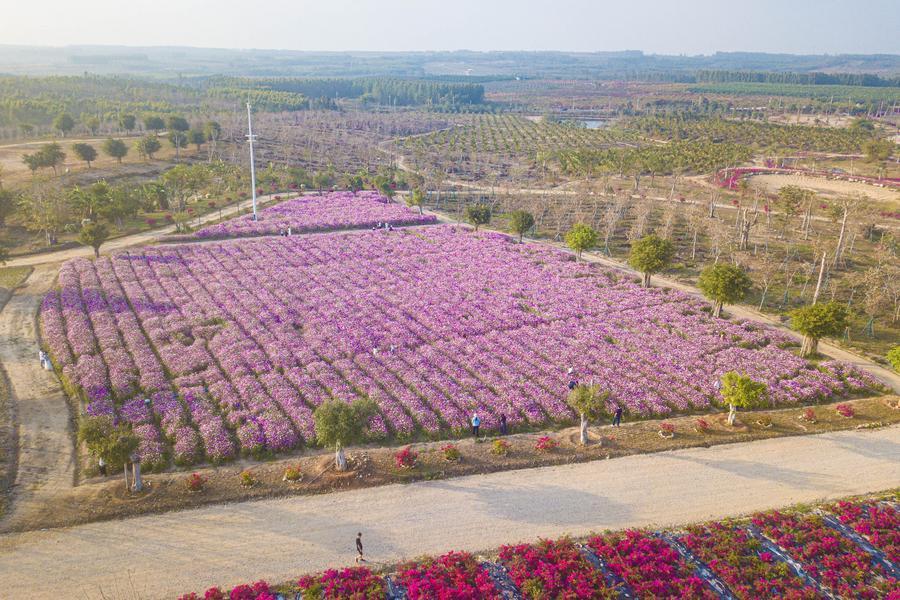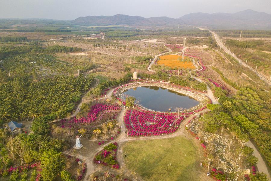 20日、海南省昌江リー族自治県の聚源花卉博覧園。(ドローンから、昌江=新華社記者/蒲暁旭)