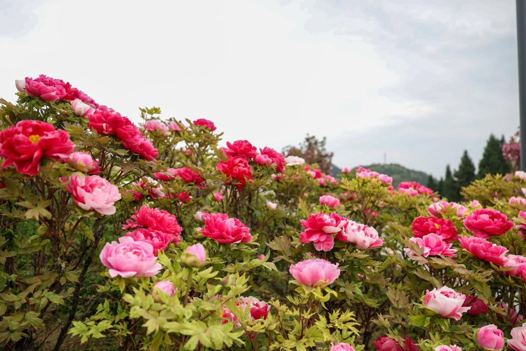 27日、重慶市墊江県太平鎮牡丹村の愷之峰観光区で満開となったボタンの花。(重慶=新華社記者/黄偉)