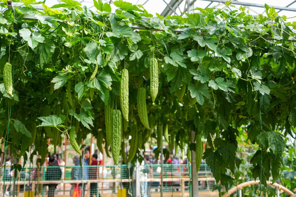 20日、中国(寿光)国際野菜科学技術博覧会で展示された新型栽培モデル。(濰坊=新華社記者/徐速絵)