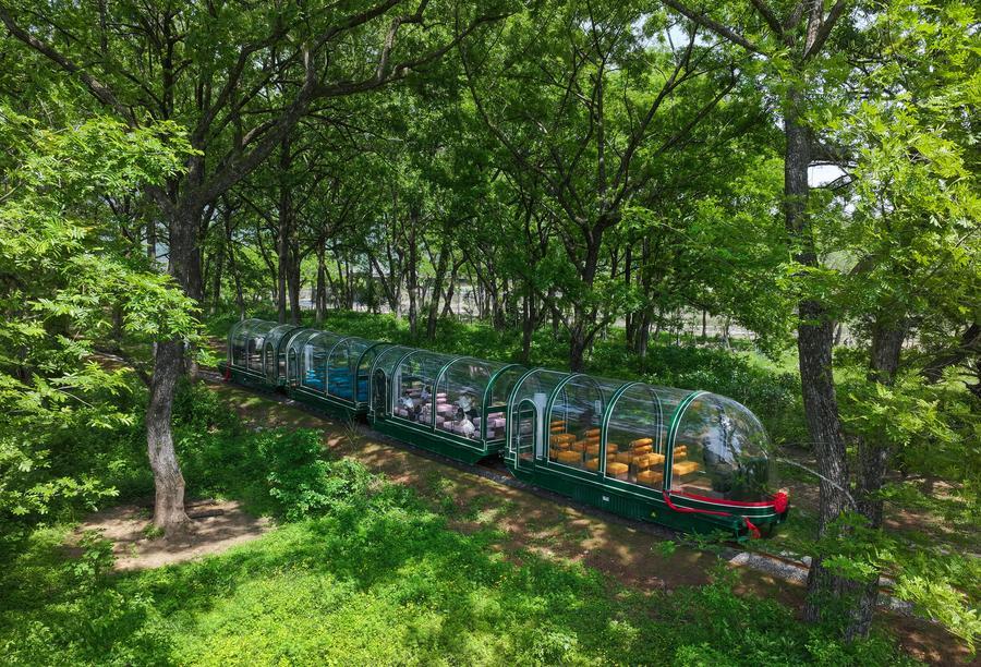 黄山市徽州区の石橋村を走るミニ列車。(2025年5月1日撮影、黄山=新華社配信/施亜磊)