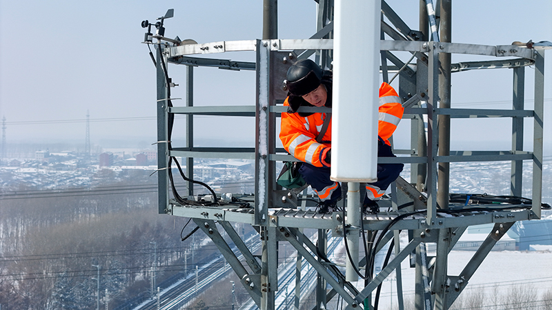 通信鉄塔上で列車の安全運行支える父子 中国黒竜江省
