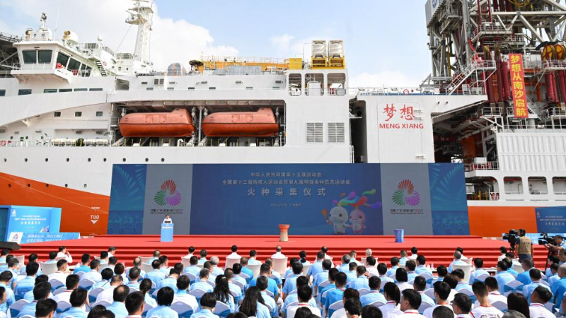 中国・広州市で全国運動会と障害者大会の聖火採火式