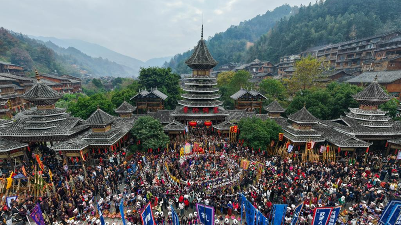 外国人観光客がトン族の新年行事を体験 中国貴州省