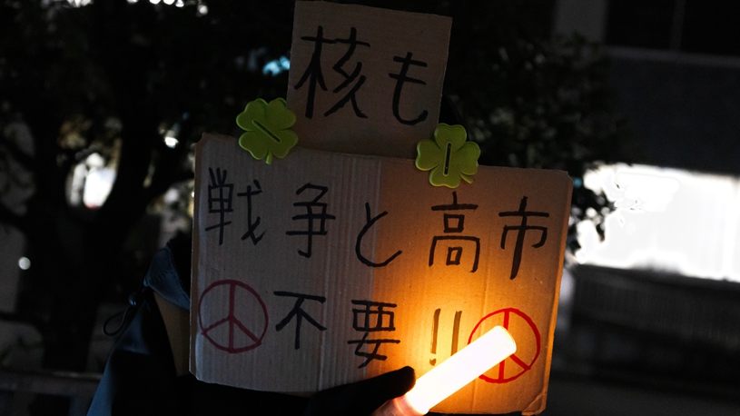 東京の首相官邸前で抗議集会 高市氏の発言撤回求める