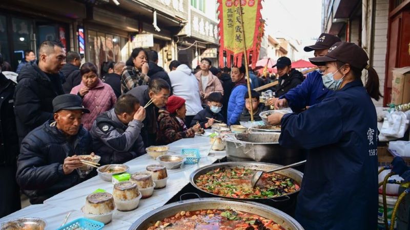 千年の古城で新春祝う「長卓宴」 浙江省建徳市