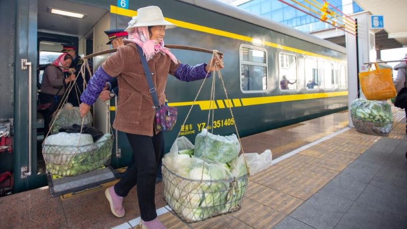 新鮮野菜を運ぶ鈍行列車、山間部の農家に豊かさもたらす 中国雲南省