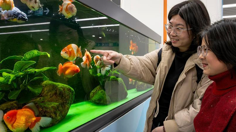 地下鉄駅を彩る金魚 中国福建省福州