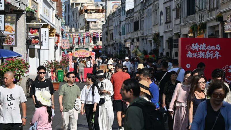 春節連休初日、観光客でにぎわう騎楼老街 中国海南省海口