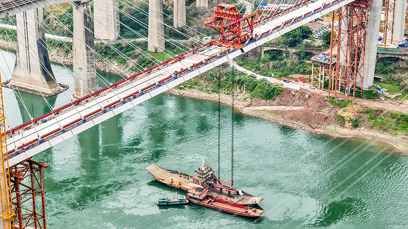 成渝中線高速鉄道の井口嘉陵江特大橋が接合完了 中国重慶市